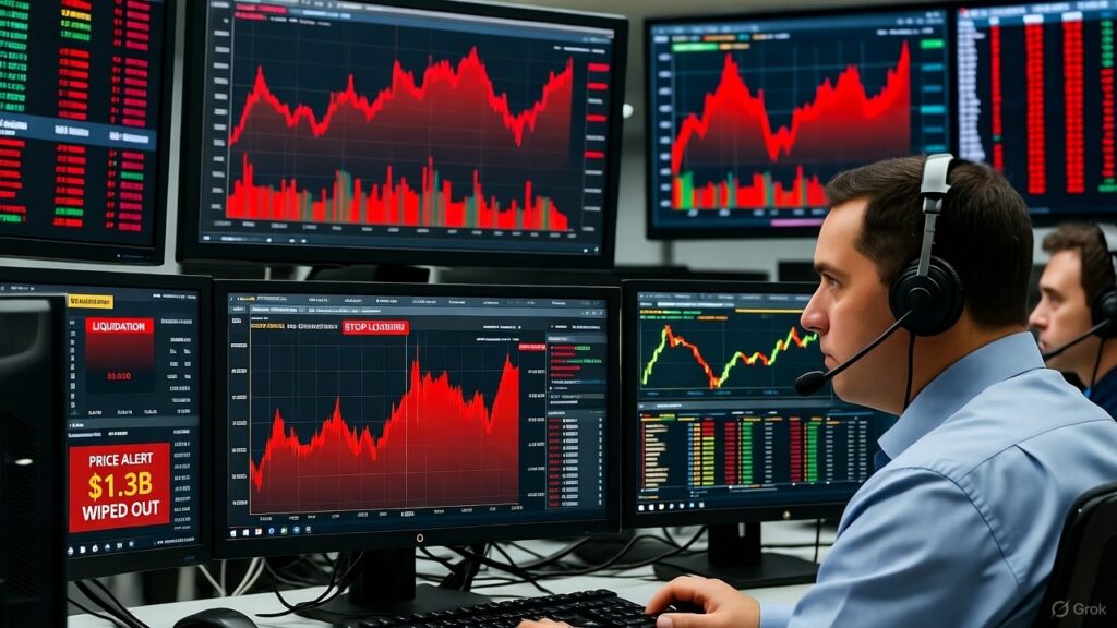 The cryptocurrency market has experienced one of its sharpest shakeouts of the year, with liquidations exceeding $1.3 billion in a